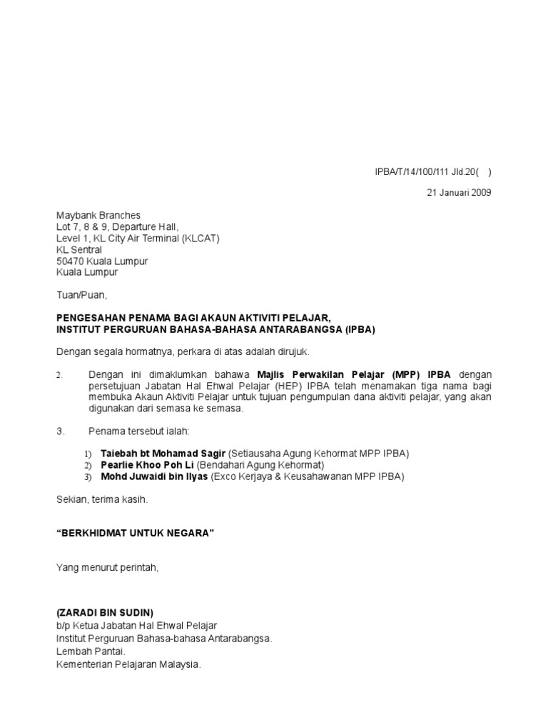 Contoh Surat Pengesahan Untuk Buka Akaun Bank Otosection